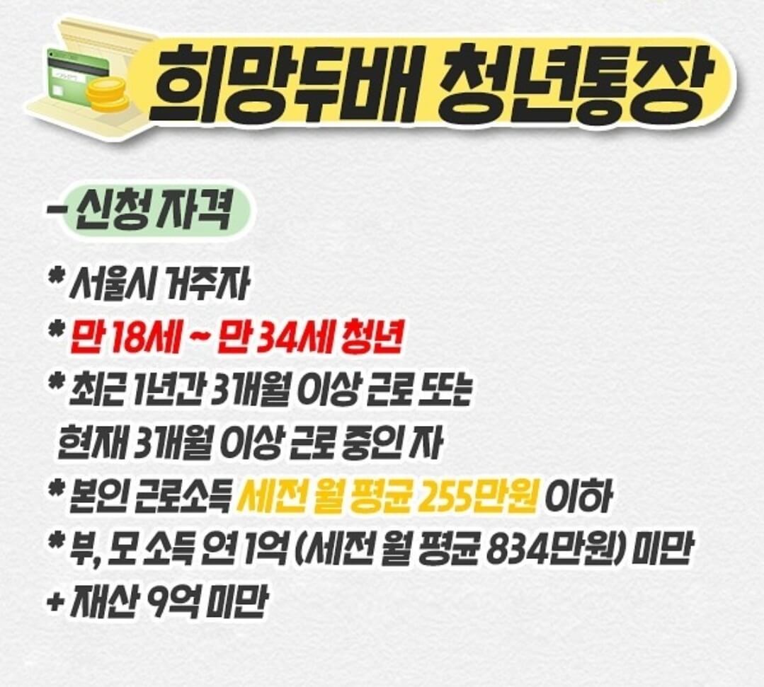 희망 두 배 청년통장 신청자격